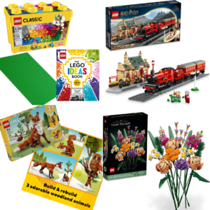 ![]() LEGO Sets We have 4 different LEGO Sets for you to enjoy: -A (create your own) LEGO Set which includes assorted LEGOs, a LEGO baseplate, and a LEGO idea book. -A Flower Bouquet LEGO Set which features 15 stems with flower and leaf varieties like roses, snapdragons, poppies, asters, daisies, and grasses. The adjustable stems make it easy to tailor the arrangement for any vase or container. Each detail of the bouquet is made from LEGO components – all customizable to create a unique display. Most of the flowers have petals that can be positioned in different ways so you can have fun designing different arrangements. Take the stems apart and recombine to adjust the height and shape of your flowers. Part of the LEGO Botanical Collection for adults, this set includes several elements made from a plant-based plastic, produced using sustainably sourced sugarcane. -A 3 in 1 Forest Animal LEGO set which allows you to build a highly posable red fox figure, a posable red owl toy perched on a tree branch, or a posable red squirrel toy with an acorn. -A Harry Potter Hogwarts Express & Hogsmeade Station LEGO Set which features an engine, coal car, 2 passenger carriages and the Trolley Witch’s confectionery trolley. Drive the Harry Potter train set on the tracks or rotate the engine’s front buffer beam for off-track journeys. Hogsmeade Station includes a ticket office, Owl Post, restroom and platform and has many authentic details to delight fans. The set has 8 Harry Potter minifigures of popular characters, including the first-ever minifigure of fan-favorite Lee Jordan, plus accessory elements such as a box of Bertie Bott’s Every Flavor Beans and the family photo album Hagrid gives Harry. Discover intuitive instructions in the LEGO Builder app where builders can zoom in and rotate models in 3D, track their progress and save sets as they develop new skills. |